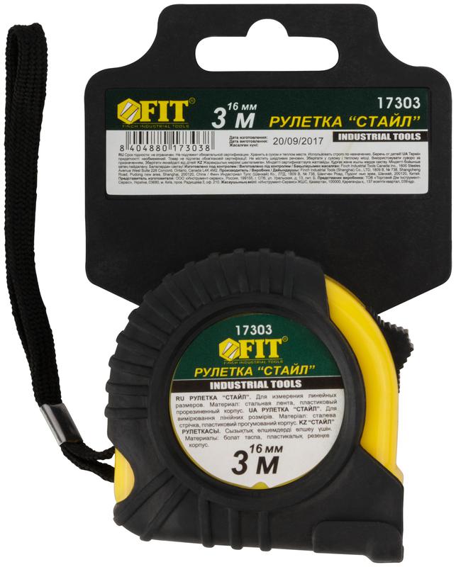 Рулетка Профи, прорезиненный корпус ''Стайл'' 3 м x 16 мм | код 17303 | FIT