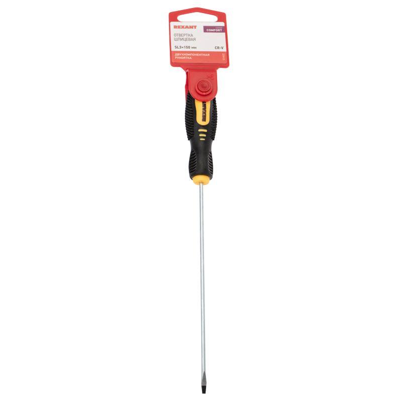 Отвертка шлицевая SL3х150 мм, двухкомпонентная рукоятка | код 12-6422 | REXANT