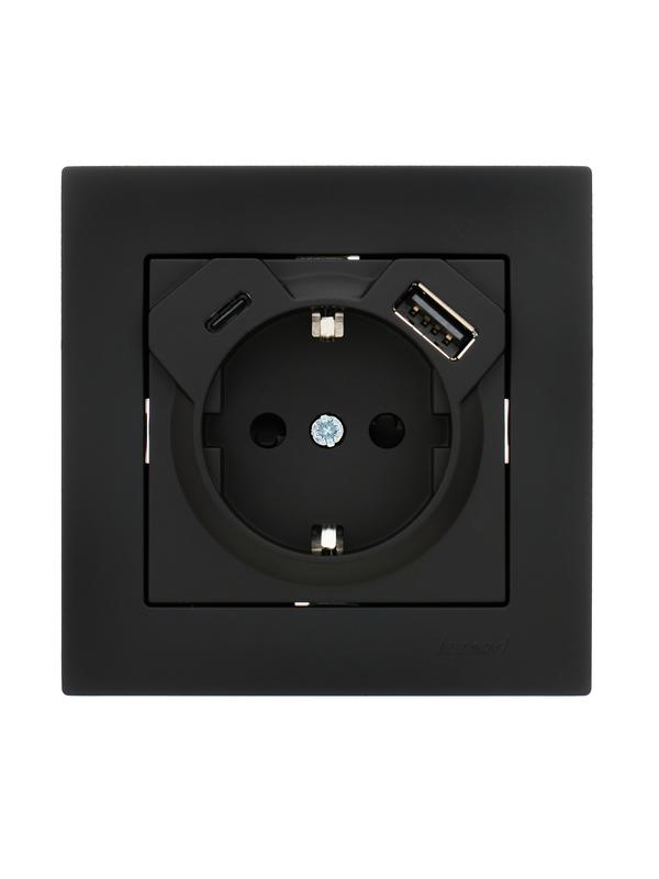 VESNA Розетка с/з TC+USB разъём чёрный бархат | код 742-4288-181TC | LEZARD