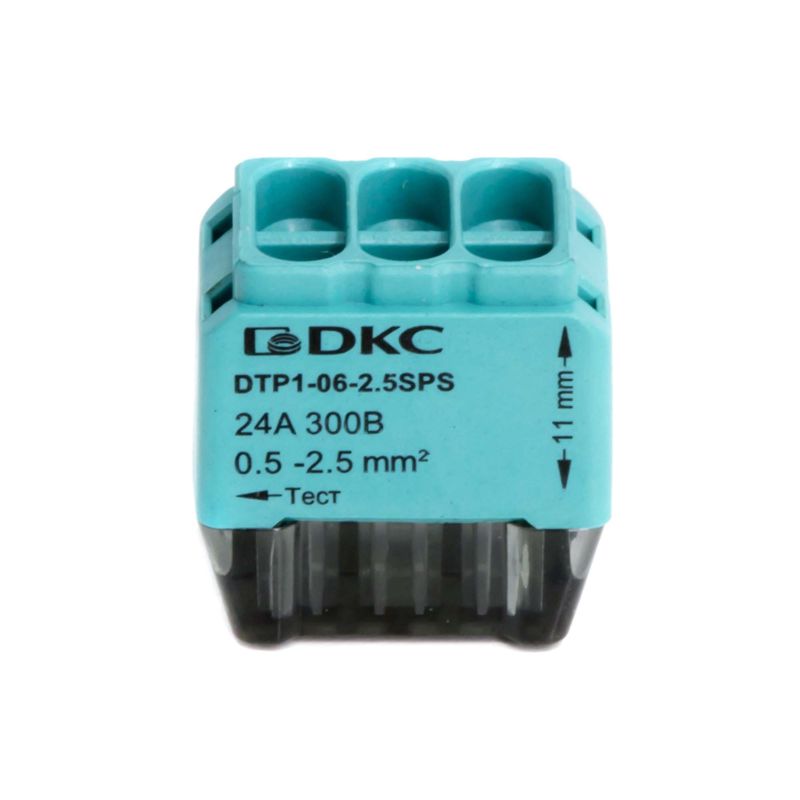 Клемма строительно-монтажная (СМК) на 6 проводника до 2.5 кв. мм. на токи до 24А (голубая) | код DTP1-06-2.5SPS | DKC