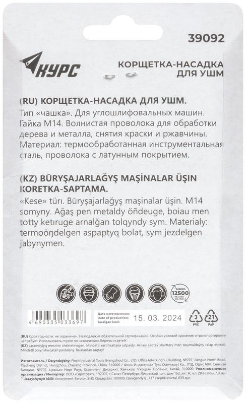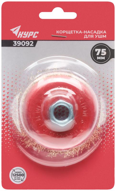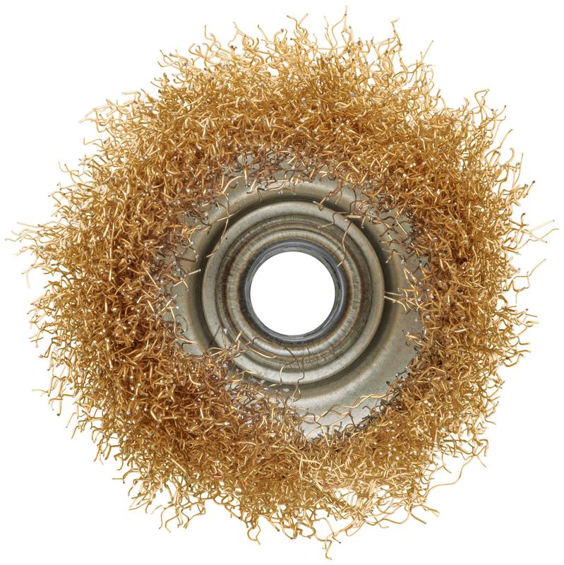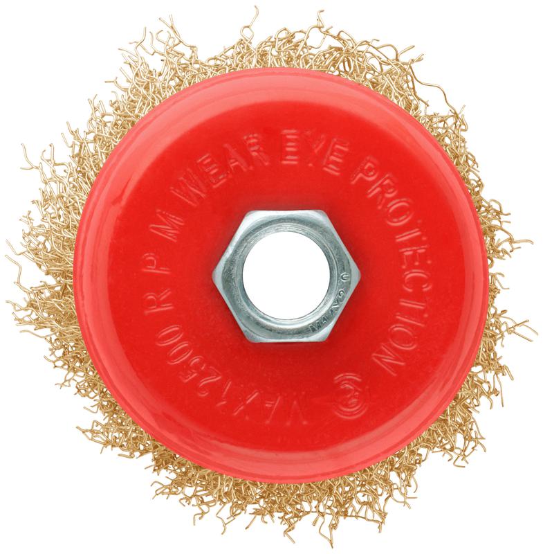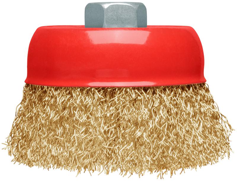 Корщетка-чашка, гайка М14, стальная латунированная волнистая проволока 75 мм, блистер | код 39092 | FIT