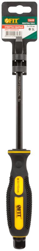 Отверткa ударная, сталь S2, шестигран.жало, боек под ключ, прорезиненная ручка, Профи 8х150 мм SL | код 55638 | FIT