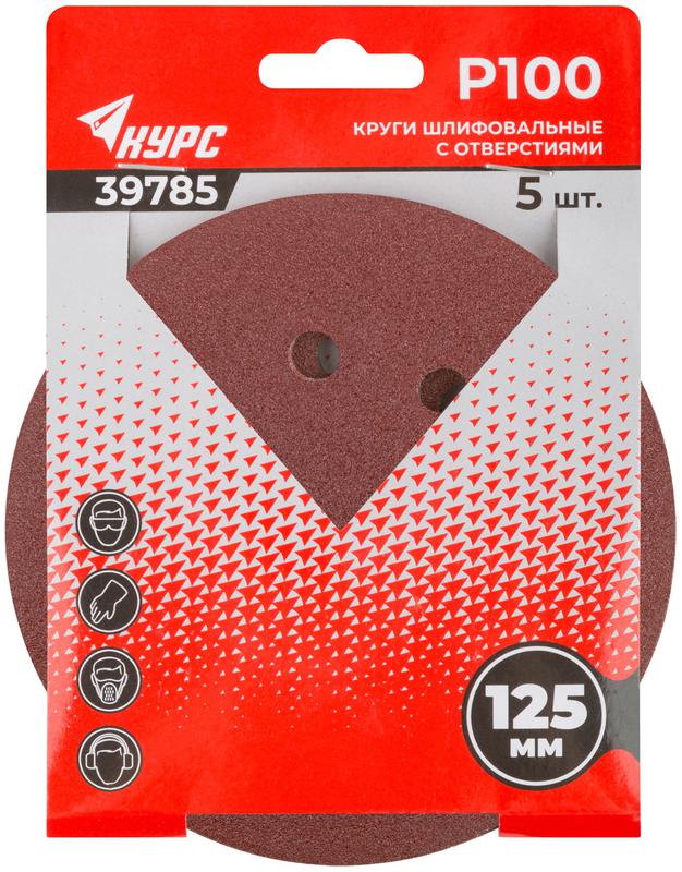 Круги шлифовальные с отверстиями (липучка), алюминий-оксидные, 125 мм, 5 шт Р 100 | код 39785 | FIT