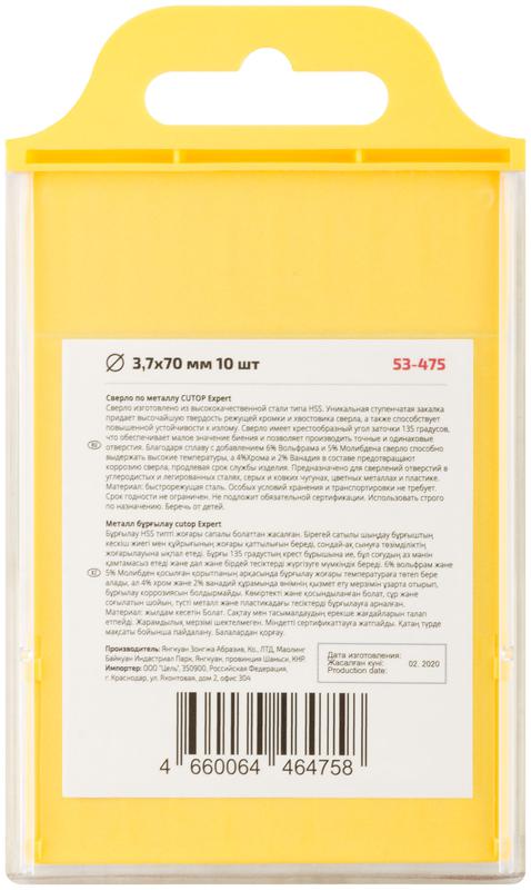 Сверло по металлу Cutop EXPERT, 3.7х70 мм (10 шт) | код 53-475 | FIT