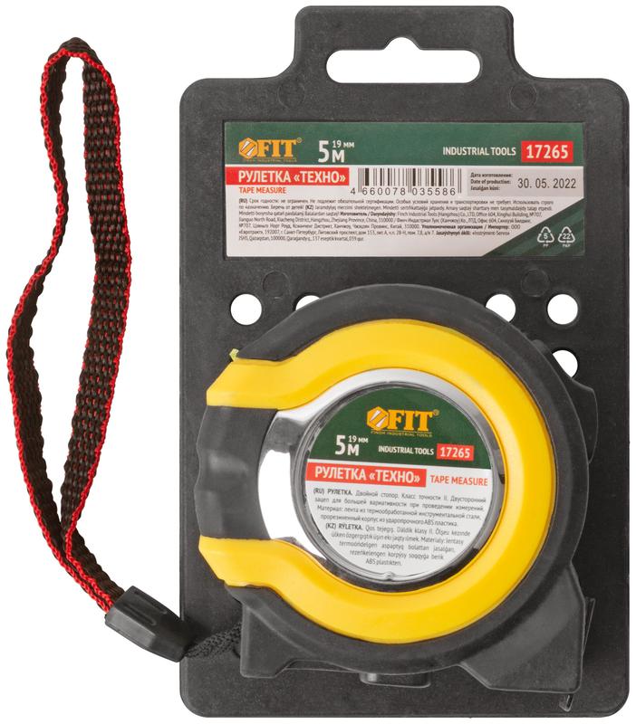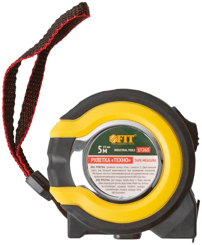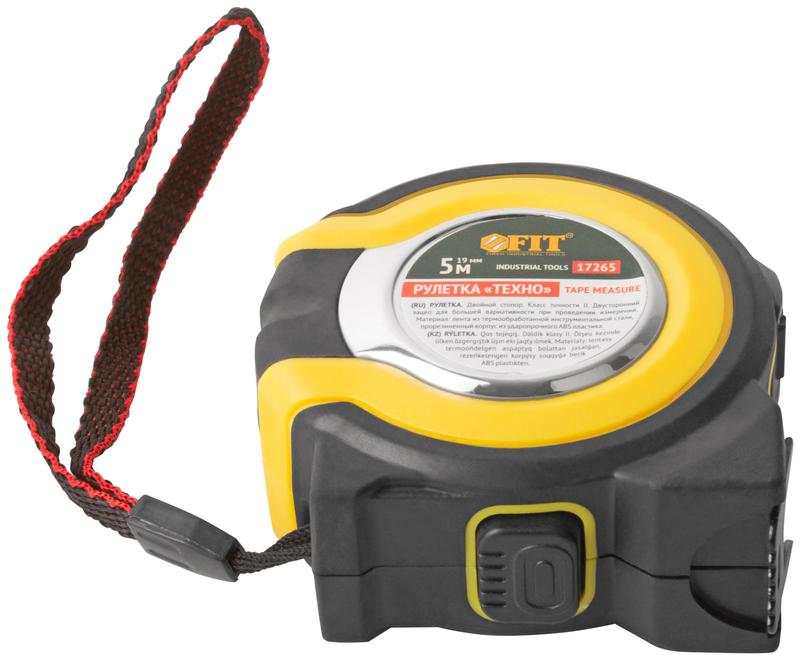 Рулетка прорезиненный корпус, двойной стопор ''Техно'' 5 м x 19 мм | код 17265 | FIT