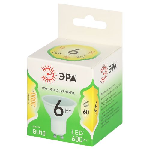 Лампа светодиодная LED 6 Вт 600Лм 3000К софит теплый GU10 220-240В LED MR16-6W-830-GU10 Green Line | код Б0067075 | ЭРА
