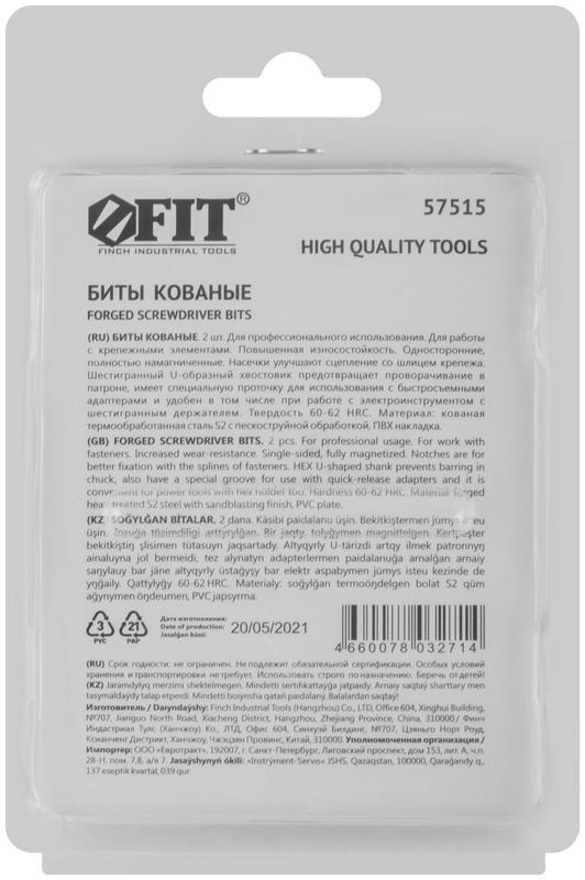 Биты кованые сталь S2 односторонние 50 мм PZ2 Профи 2 шт блистер | код 57515 | FIT
