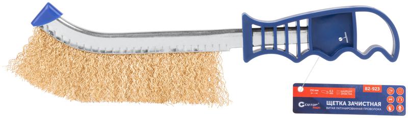Щетка зачистная, латунированная витая проволока 0,3 мм, пластиковая ручка, 250 мм, блистер, Profi | код 82-923 | FIT