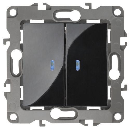 Переключатель двойной, 10АХ-250В, Эра12, чёрный,12-1106-06 | код Б0014668 | ЭРА