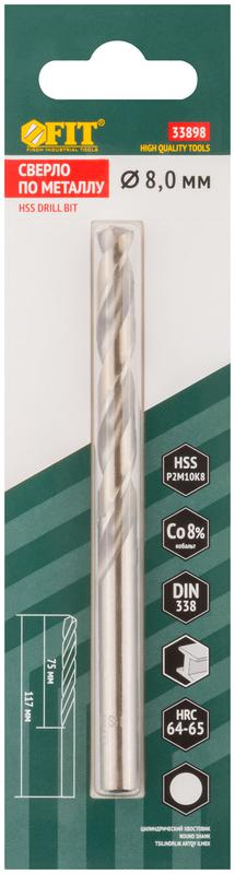Сверла по металлу HSS с добавкой кобальта 8% Профи ( М42 ) в блистере 8.0х117 мм ( 1 шт.) | код 33898 | FIT