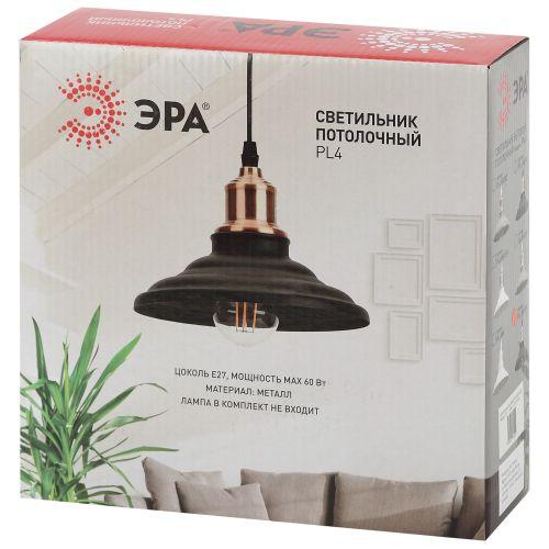 Светильник PL4 BK/BN Подвес металл, E27, max 60W, d203 мм, шагрень черный/темный никель | код Б0037439 | ЭРА