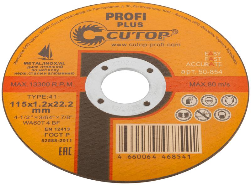 Диск профессиональный отрезной по металлу, нержавеющей стали и алюминию Cutop Profi Plus, T41-115x1,2x22,2 мм | код 50-854 | FIT