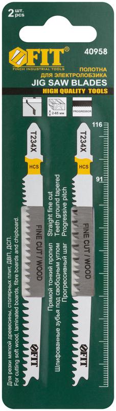 Полотна по дереву, HCS, шлифованные под свободным углом зубья, 116/91 мм, переменный шаг (T234X), 2 шт | код 40958 | FIT