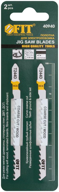 Полотна по дереву, HCS, разведенные, шлифованные зубья 100/74/4.2 мм (T244D), 2 шт | код 40940 | FIT