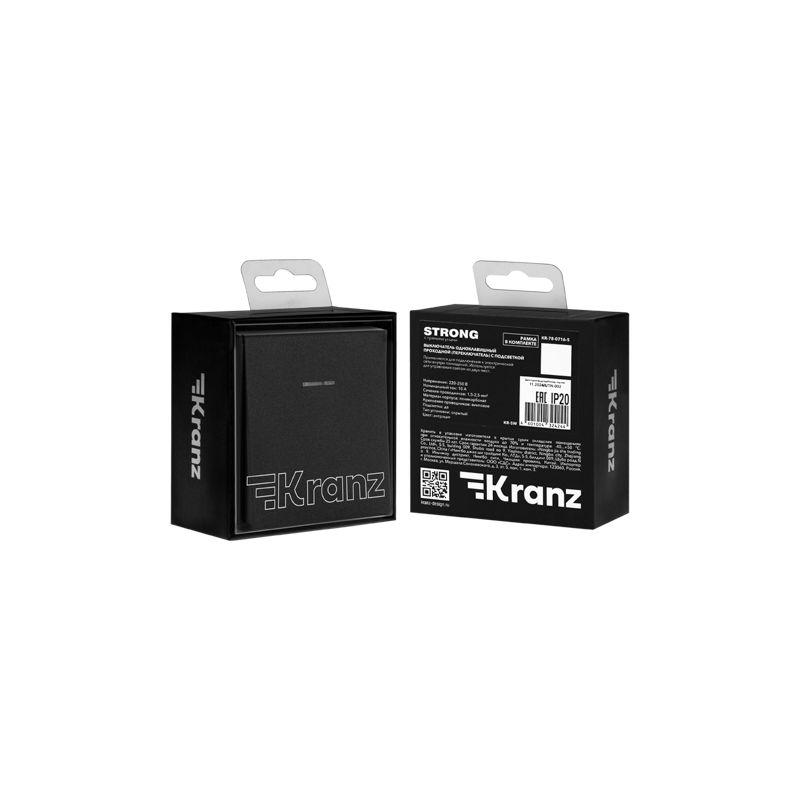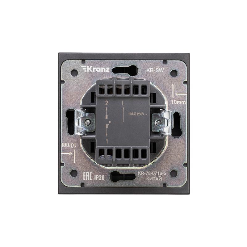 Выключатель STRONG одноклавишный проходной (переключатель) с подсветкой 10А скрытой установки механизм антрацит | код KR-78-0716-5 | REXANT