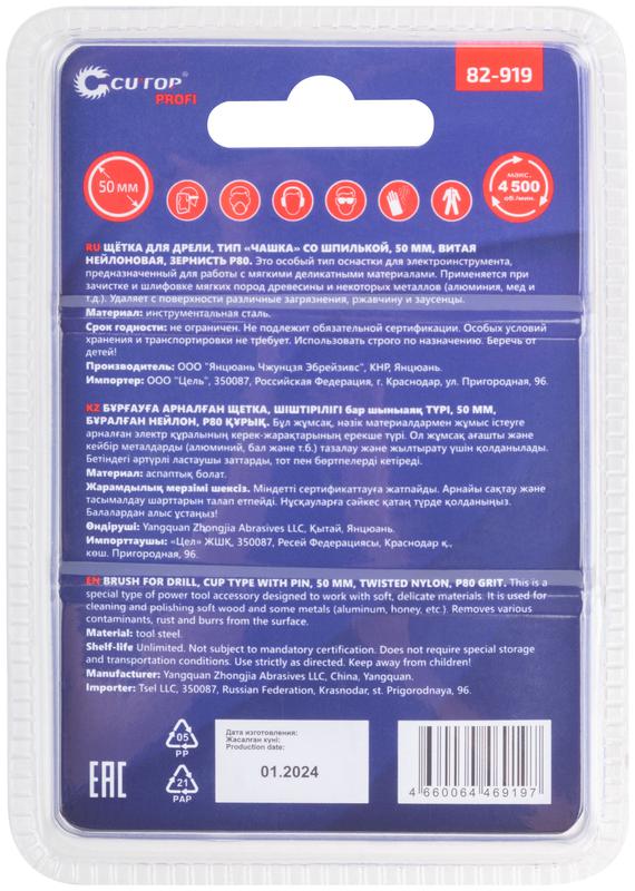 Щетка для дрели, Чашка, нейлон, 50 мм, блистер, Profi | код 82-919 | FIT