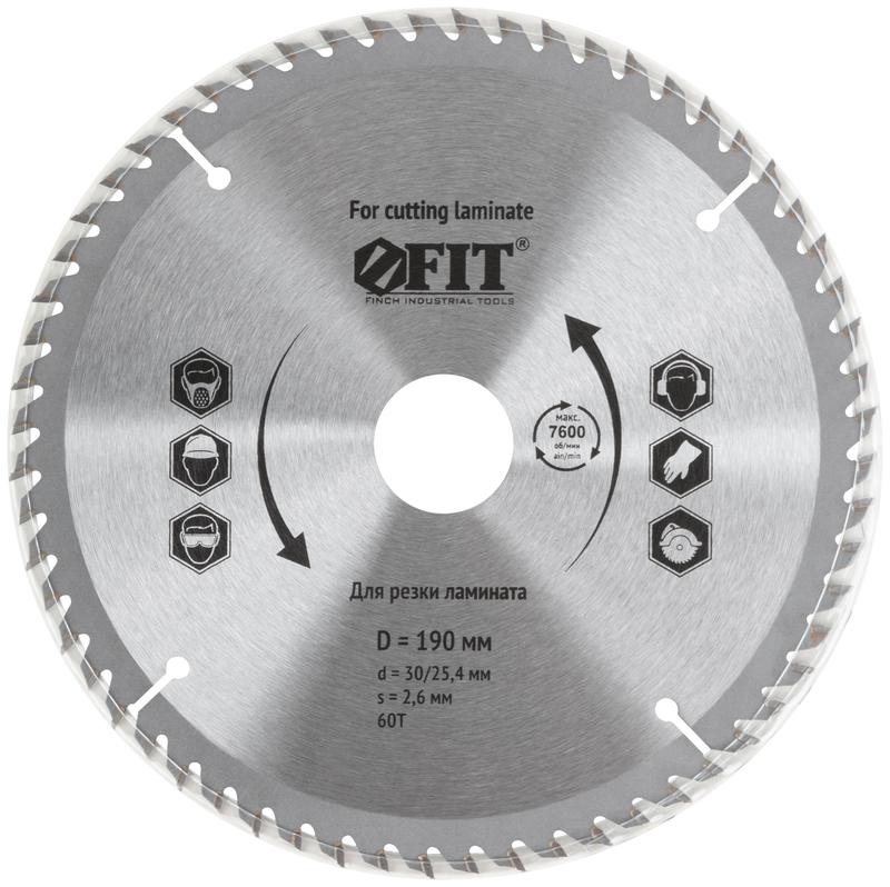 Диск пильный для циркулярных пил по ламинату 190x30/25.4x60T | код 37777 | FIT