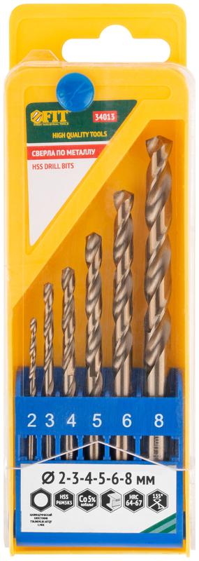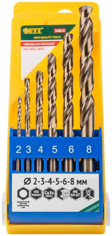 Набор сверл HSS по металлу с добавкой кобальта 5%, 6 шт (2-3-4-5-6-8 мм) | код 34013 | FIT
