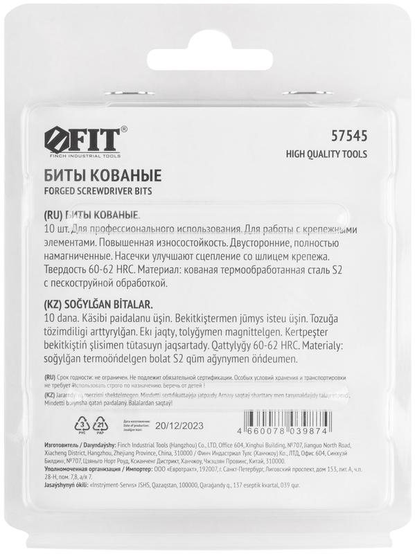 Биты кованые, сталь S2, двусторонние 50 мм PH2/РН2, Профи 10 шт., блистер | код 57545 | FIT