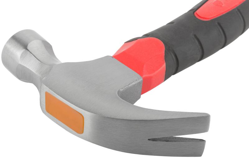 Молоток-гвоздодер, укороченный, фиброглассовая обрезиненная ручка 25 мм, 225 гр | код 44765 | FIT