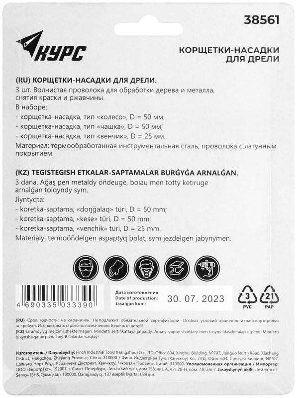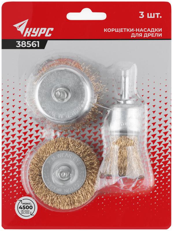 Корщетки со штифтом, набор 3 шт. ( колесо 50 мм / чашка 50 мм / венчик 25 мм ) | код 38561 | FIT