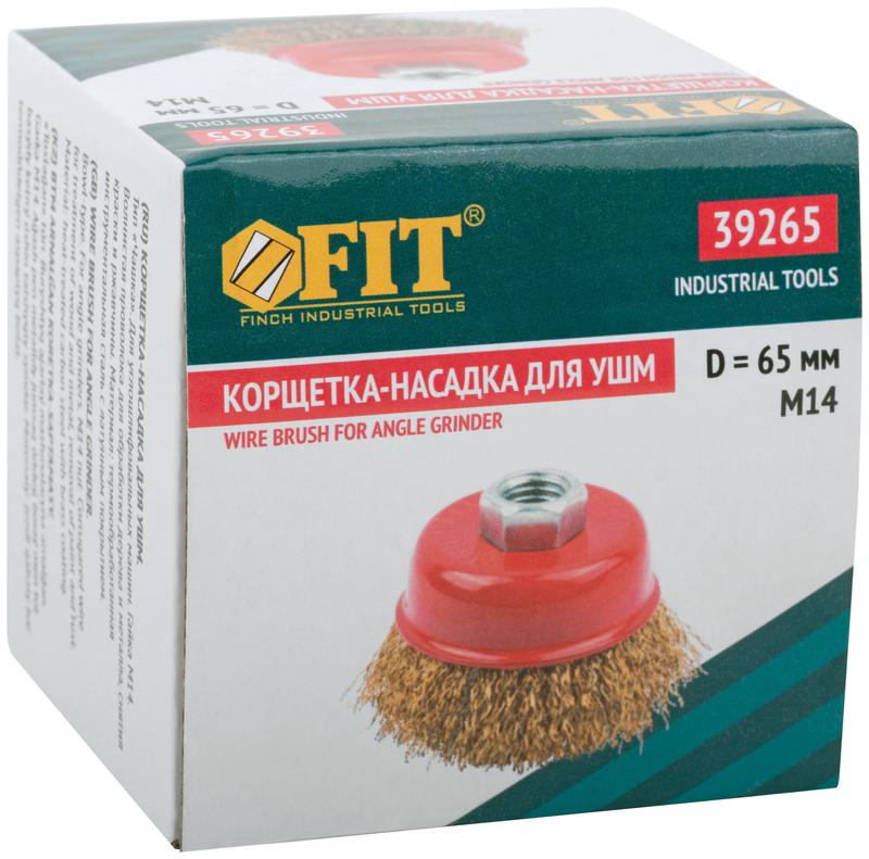 Кордщетка-чашка, гайка М14, стальная латунированная волнистая проволока 65 мм | код 39265 | FIT