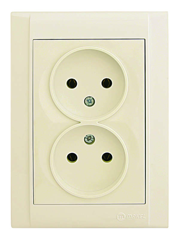 Defne Розетка двойная без заземления бежевая | код 42010017 | Makel