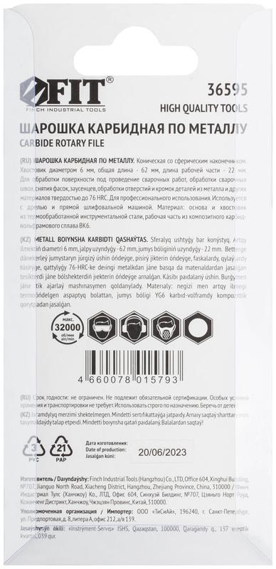 Шарошка карбидная Профи, штифт 6 мм, коническая с закруглением | код 36595 | FIT