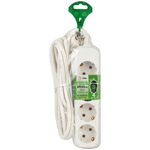 Удлинитель электрический 4 розетки с заземлением 3м ПВС 3x1мм2 UDL-16-430-E Greenline ЭРА | код Б0065028 | ЭРА