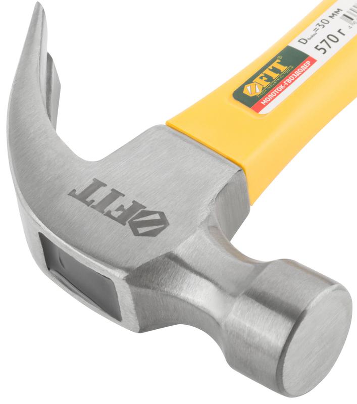 Молоток-гвоздодер, фиброглассовая усиленная ручка, Профи 30 мм, 570 гр. | код 44780 | FIT