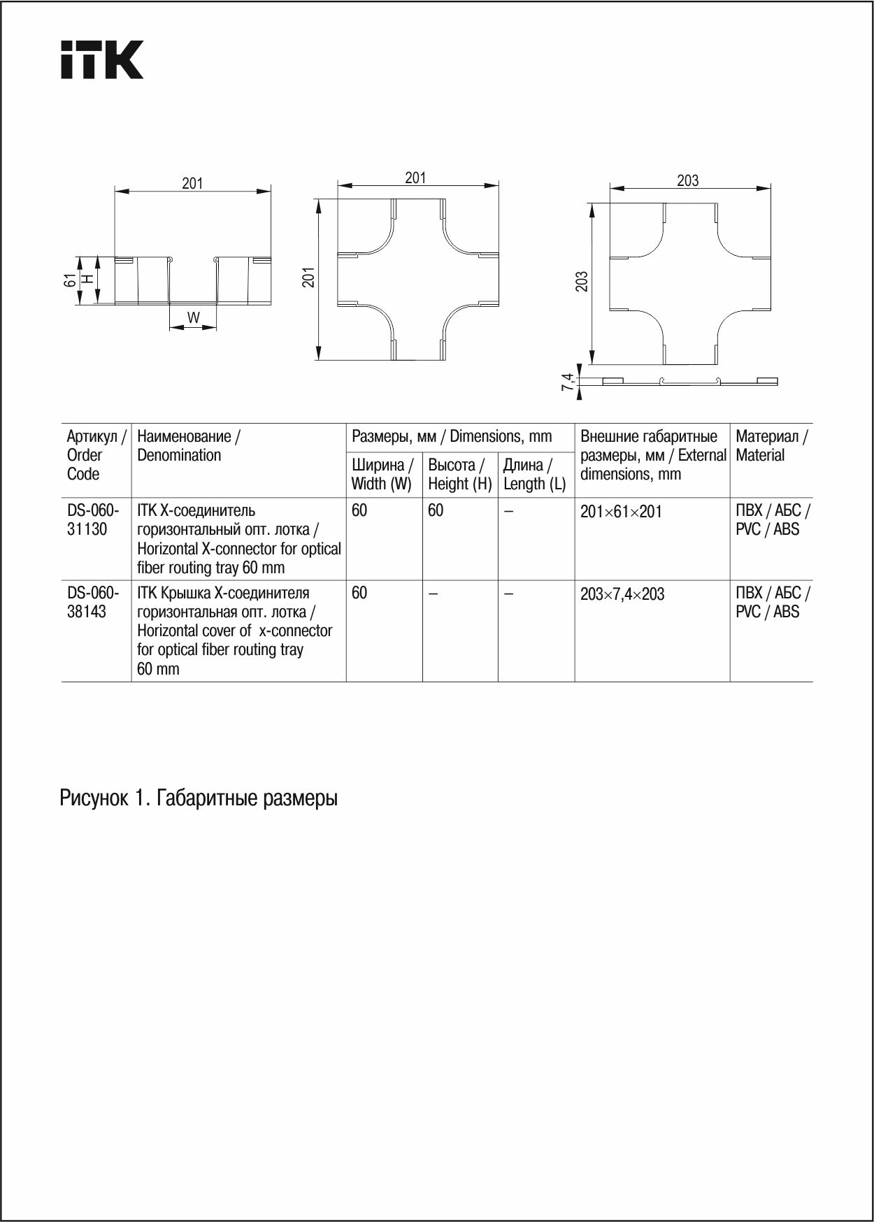 Наименование в прайсе производителя ITK Х-соединитель горизонтальный оптического лотка 60мм