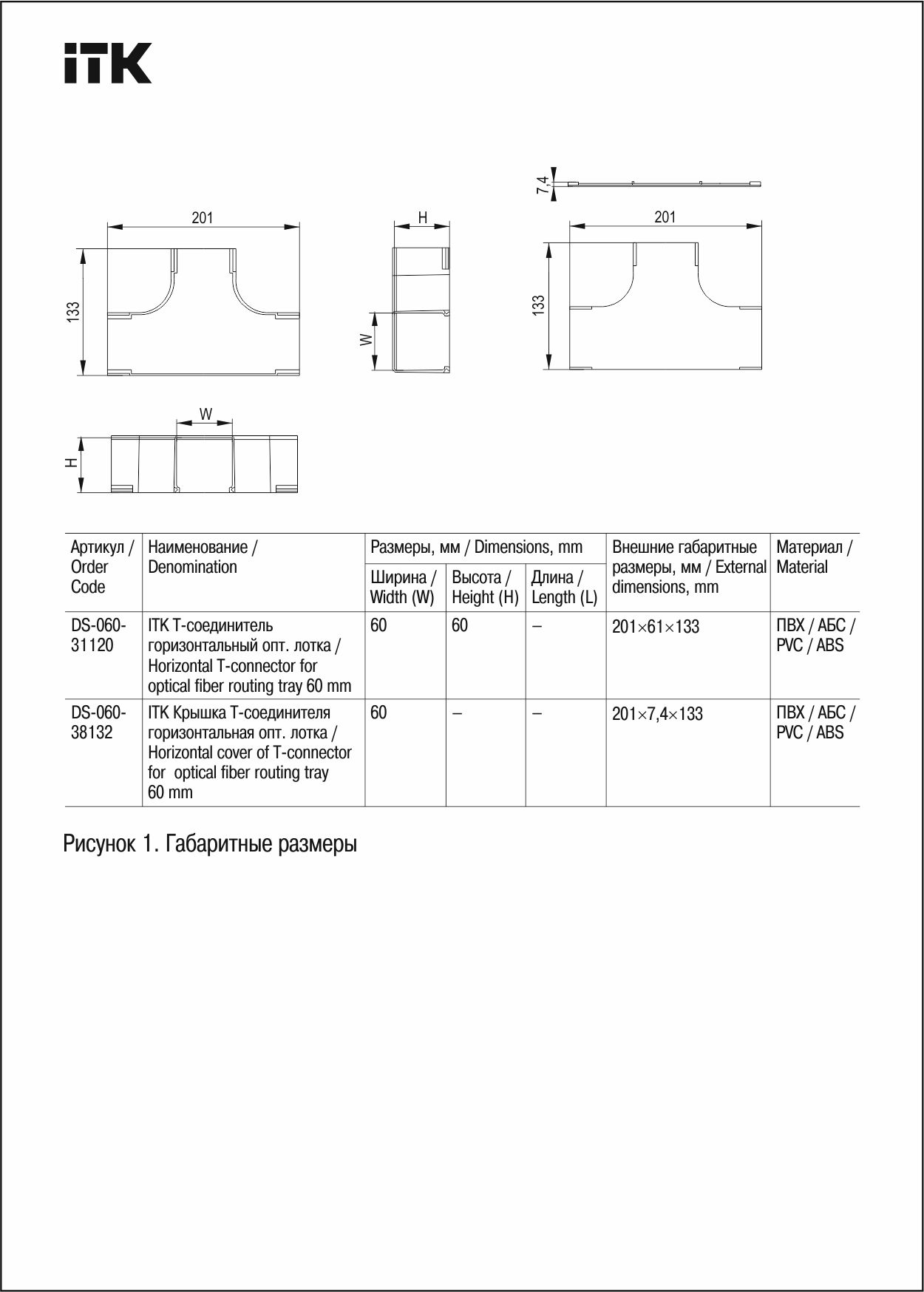 Наименование в прайсе производителя ITK Крышка Т-соединителя горизонтальная оптического лотка 60мм