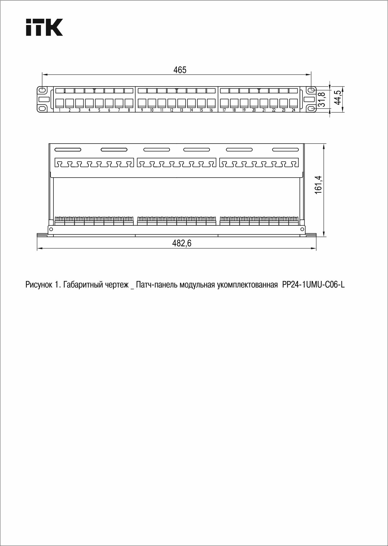 Наименование в прайсе производителя ITK 1U Патч-панель укомплектованная кат.6 UTP 24 порта с индикацией