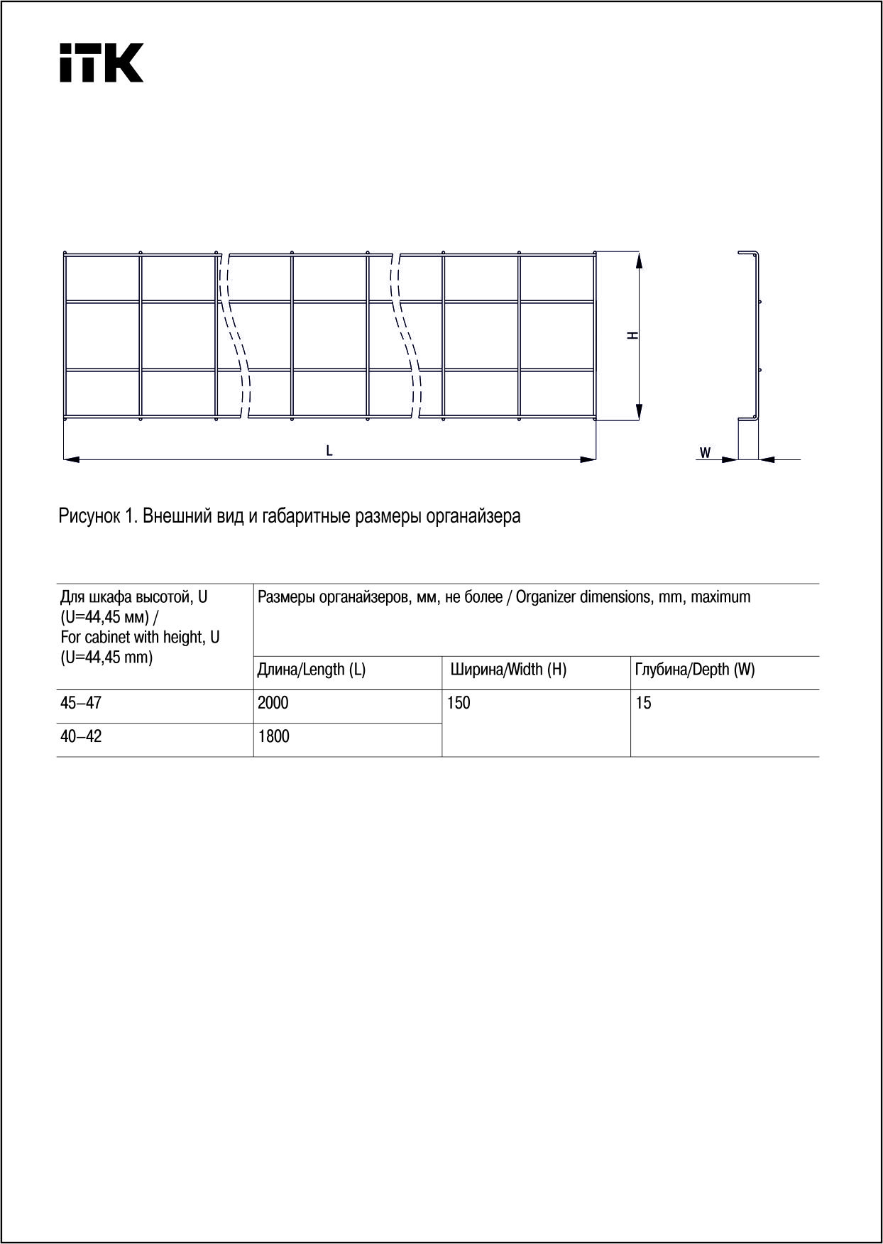 Наименование в прайсе производителя ITK by ZPAS Органайзер кабельный вертикальный проволочный 40-42U