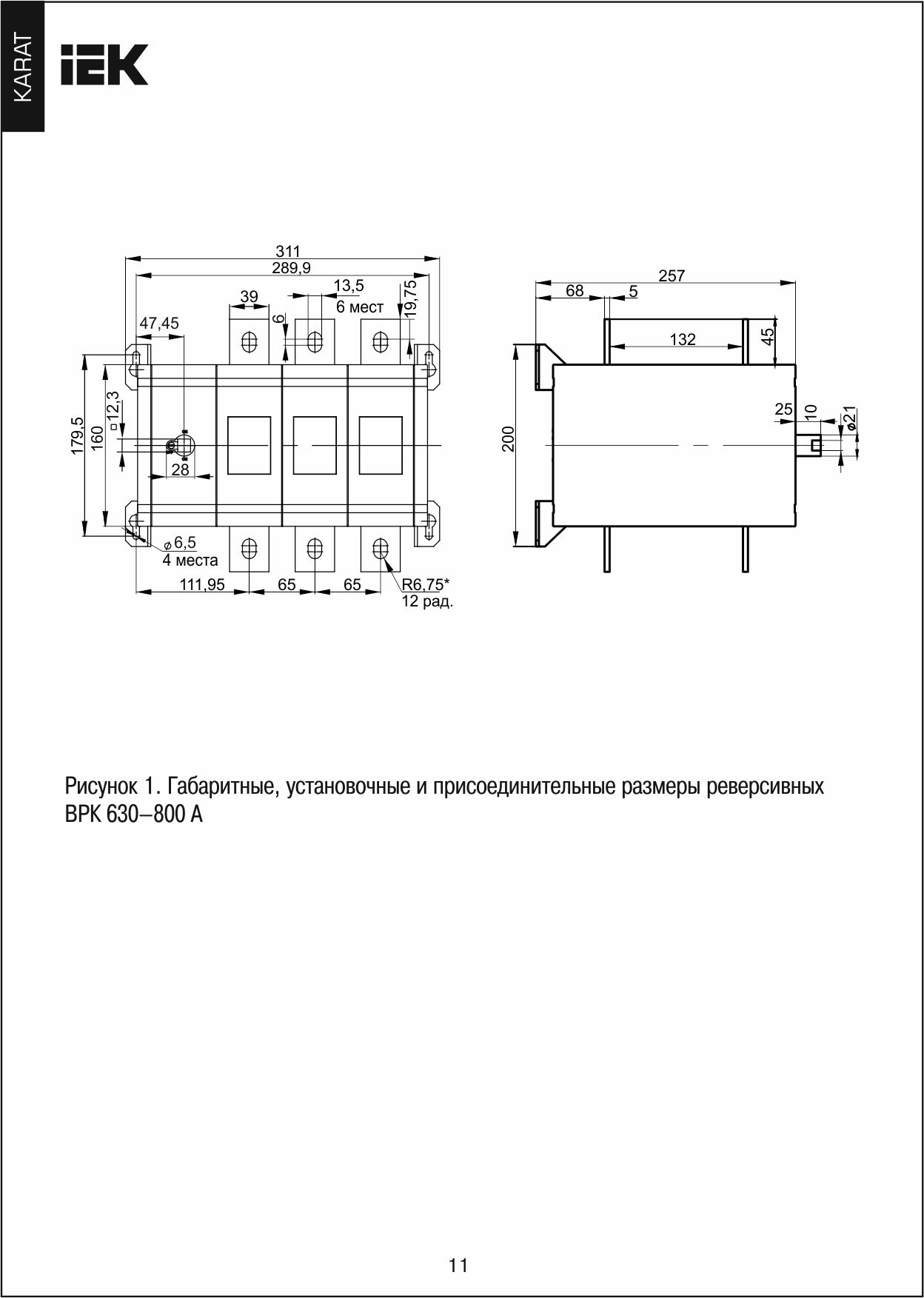 KARAT Выкл-разъед. ВРК реверс. без рукоятки 3P 630А IEK | код KA-VR20-3-0630 | IEK