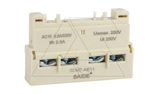 Блок-контакт вспом. SDM7-AE11, 1NO+1NC, 0.5A(240V AC15)/1A(24V DC13), фронтальный монтаж, для SDM7-32, серый | код SDM7-AE11-G | SAIDE