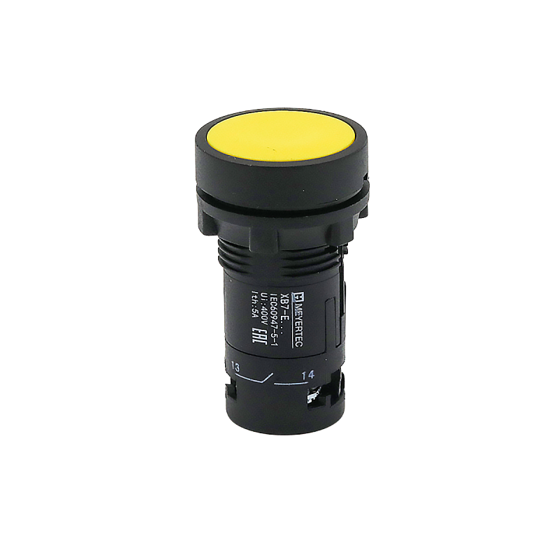 Кнопка плоская желтая с фиксацией, 1NO+1NC, IP54, пластик MTB7-EH55 | код 132696 | MEYERTEC