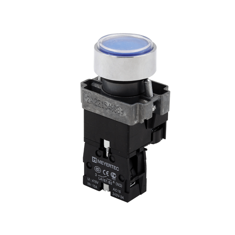 Кнопка плоская синяя с подсветкой, 220V AC/DC, 1NO, IP67, металл MTB2-BWF3661 | код 132655 | MEYERTEC