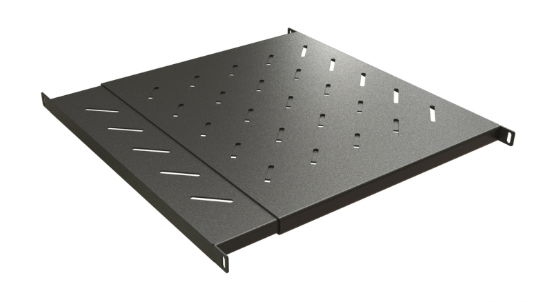 Полка c 19 креплением, раздвижная, 0.5U, с регулируемой глубиной установки от 405 мм до 700 мм, нагрузка до 60 кг, для установки в шкафы глубиной 600-800 мм, цвет черный Hyperline TSD3L-0.5U-405/­700-RAL9005 | код 443446 | Hyperline