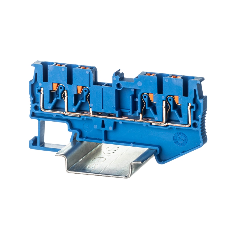 Клемма проходная, зажим push-in, 4 точки подключения, 2.5 кв.мм, синяя | код VPR-2.5-QUATTRO-BU | DKC