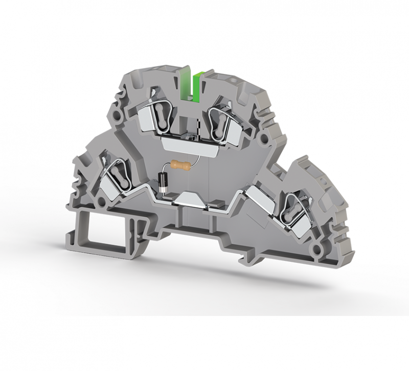 318 710, Клеммник 2-х ярусный пружинный, 4 мм.кв., с индикацией 220 VAC, (бежевый), YBK4-2 FLD 220VAC | код 0.0.0.3.18710 | KLEMSAN