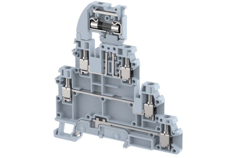 Клемма проходная винтовая 4 мм2, двухуровневая, под предохранитель, с заземлением, на 5 подключений, синяя TQF4-2T+E-BLUE | код 1203280001 | Elmex