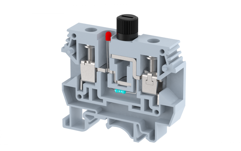 Клемма проходная винтовая 10 мм2 под предохранитель, на 2 подключения, со светодиодом 48 VDC, желтая KUF10D2-Y | код 1105260484 | Elmex