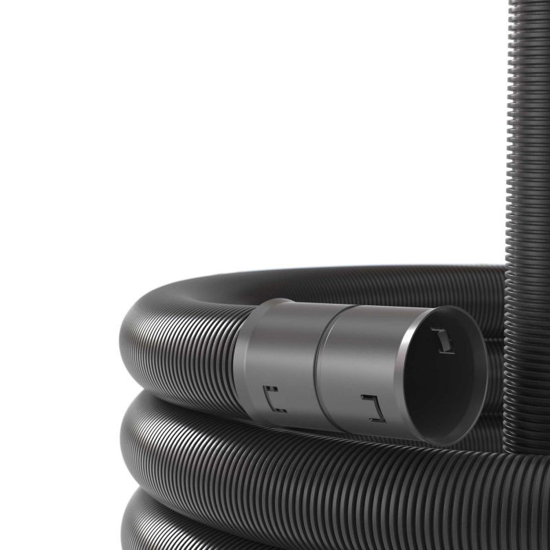 Двустенная труба ПНД гибкая для открытой прокладки д.90мм, SN8, 540Н, УФ, с протяжкой, в бухте 50м, цвет черный | код 151990 | DKC
