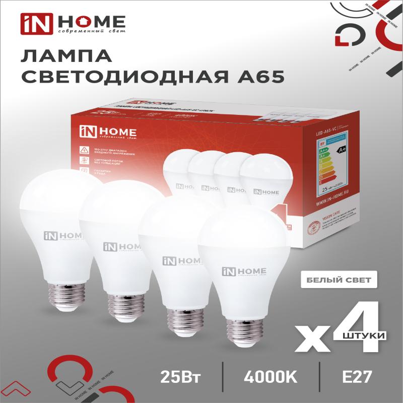 Лампа светодиодная LED-A65-VC 25Вт 230В Е27 4000К 2380Лм IN HOME | код 4690612052526 | IN HOME