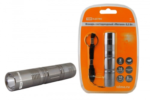 Фонарь светодиодный Металл, 0,5 Вт светодиод 30 лм/Вт, бат. 1*AA TDM | код SQ0350-0012 | TDM