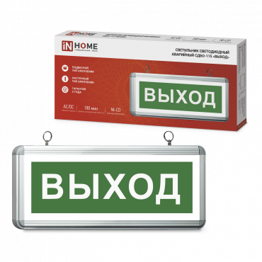 Светильник светодиодный аварийный СДБО-115 ВЫХОД 3 часа NI-CD AC/DC односторонний IN HOME | код 4690612038131 | IN HOME