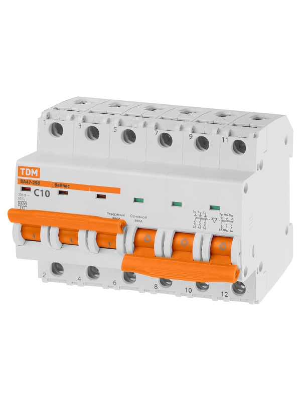 Авт. выкл. с мех. блок. (байпас) ВА47-29Б 3Р+3Р 10А 4,5кА х-ка C TDM | код SQ0206-0417 | TDM