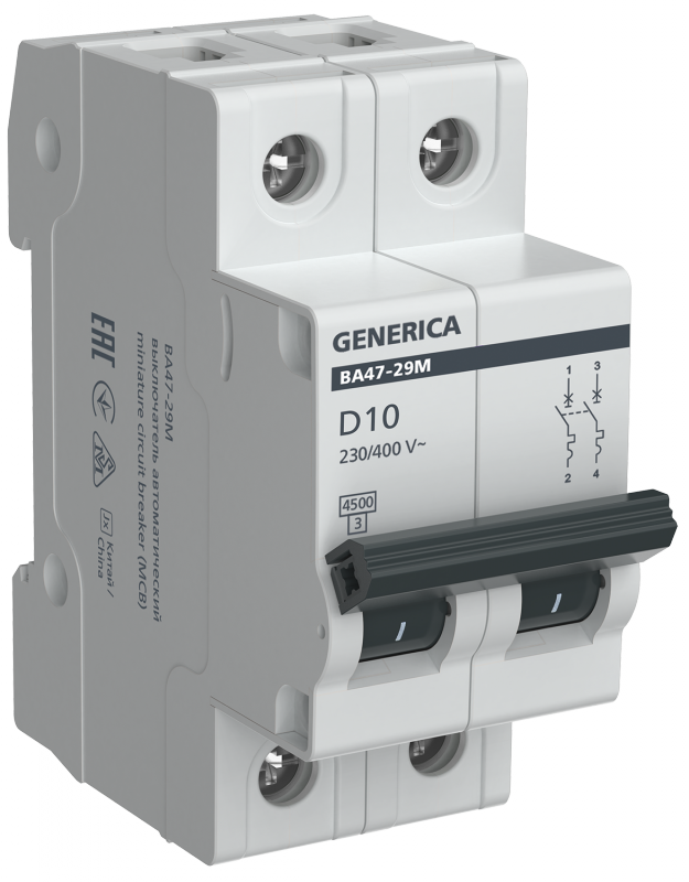 Авт. выкл. ВА47-29М 2P 10А 4,5кА D GENERICA | код MVA21-2-010-D-G | GENERICA by IEK