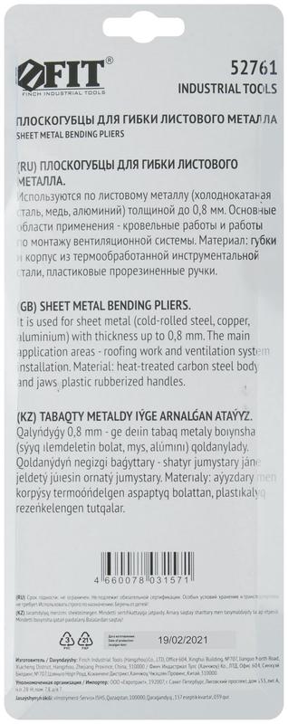 Плоскогубцы для гибки листового металла прорезин. ручки 230мм FIT 52761